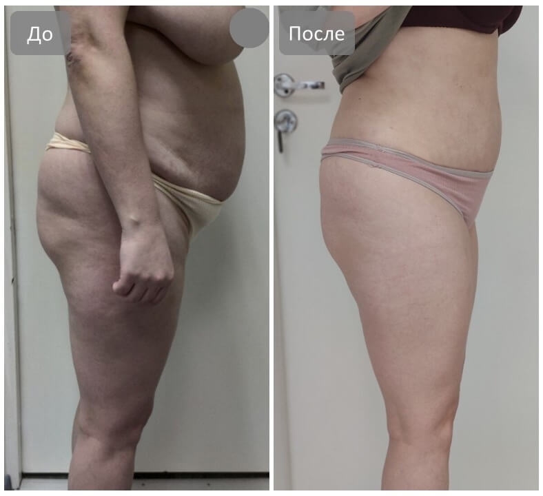 Пациентка с избыточными жировыми отложениями на животе с формированием дряблости и отвислости кожи в нижних отделах живота. С ИМТ 30,1 (ожирение I ст). Эти изменения стали появляться после первых родов. После стрессовой ситуации произошел набор веса около 20 кг.